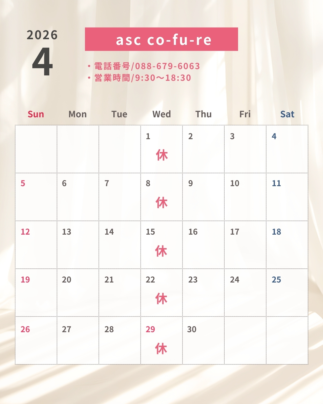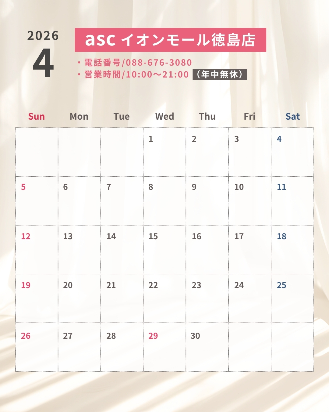 2026年4月の営業日カレンダー