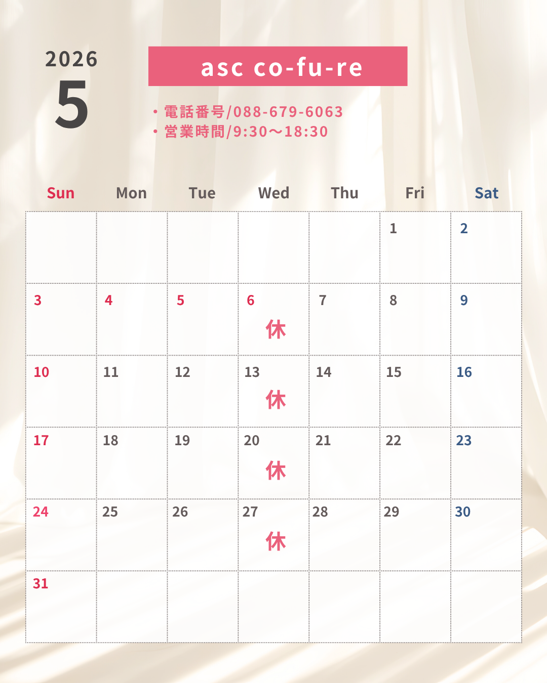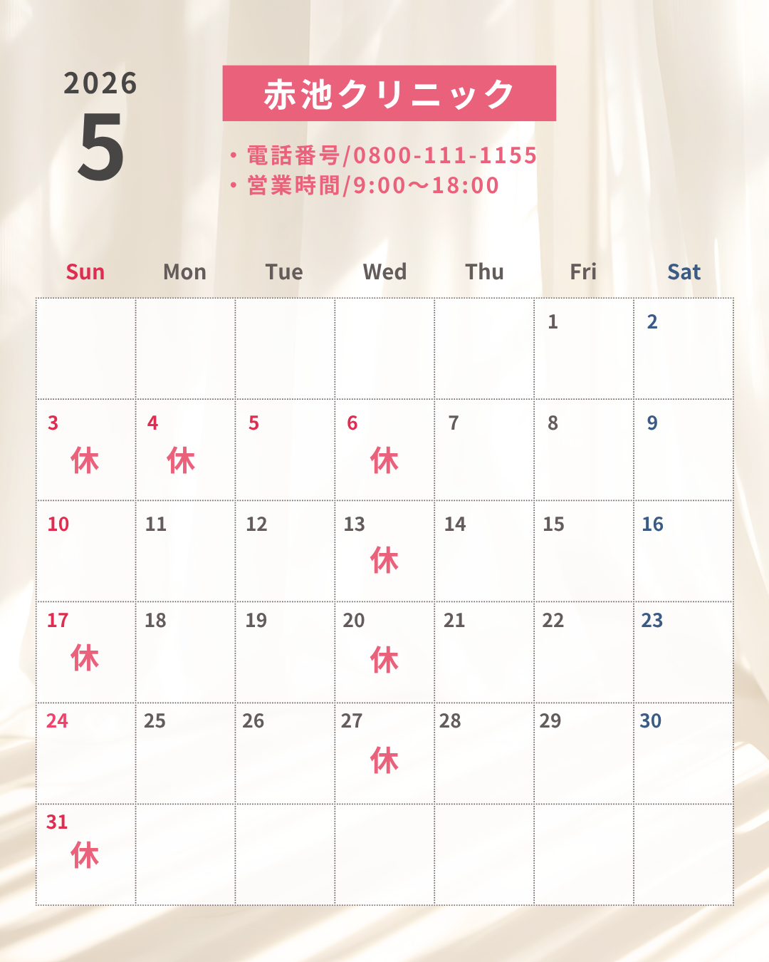 2026年5月の営業日カレンダー