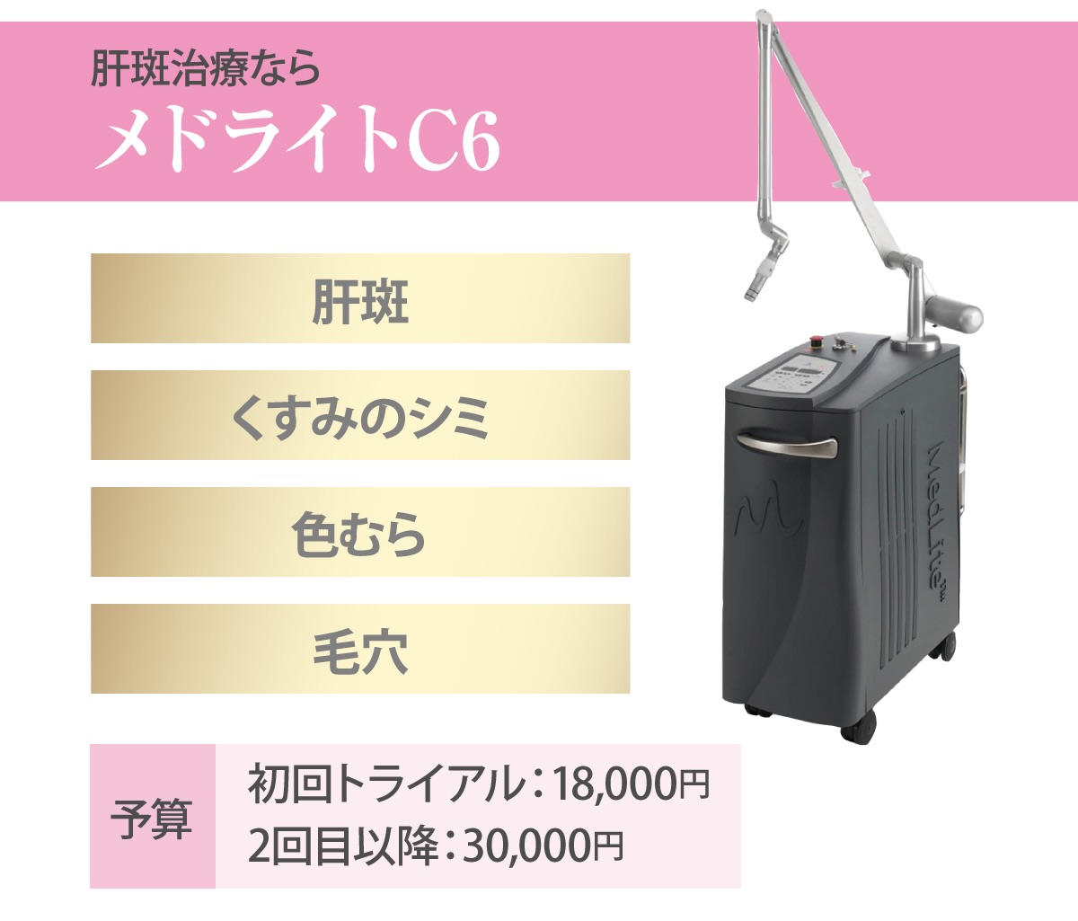 メドライトC6(トライアル18,000円/2回目以降 30,000円)、エンビロントリートメント(1回 8,800円~13,200円)